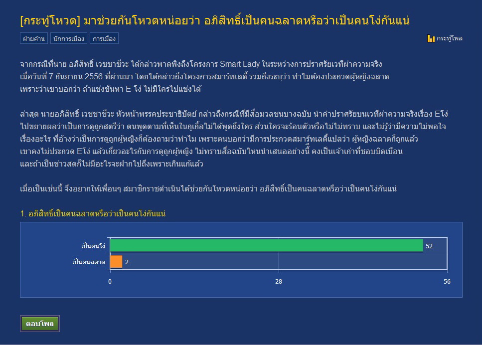 มาช่วยกันโหวตหน่อยว่า อภิสิทธิ์เป็นคนฉลาดหรือว่าเป็นคนโง่กันแน่