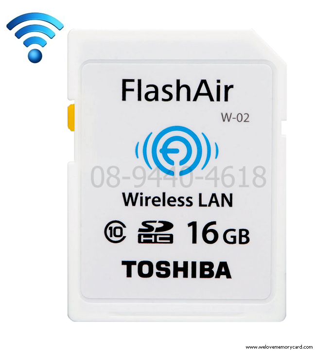 - TOSHIBA FlashAir เมมโมรี่การ์ดความเร็วสูง ขนาดความจุ 8 GB / 16 GB พร้อมด้วย Wi-Fi ในตัว