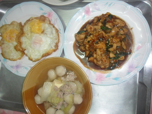 มื้อเที่ยงวันศุกร์ ผมก้อลดจำนวนลง ข้าวขาหมูใส่ไข่ 60 ข้าวกะเพราถาด 70 น้ำแข็งใส 35 (เพิ่มมะพร้าว) น้ำดื่มกดฟรีเอา ยอดคือ 165 บาท ประมาณนี้น่าจะโอเคนะครับ ตอนแรกกินข้าวขาหมู บอกตรง พยาธิยังไม่อิ่มเล