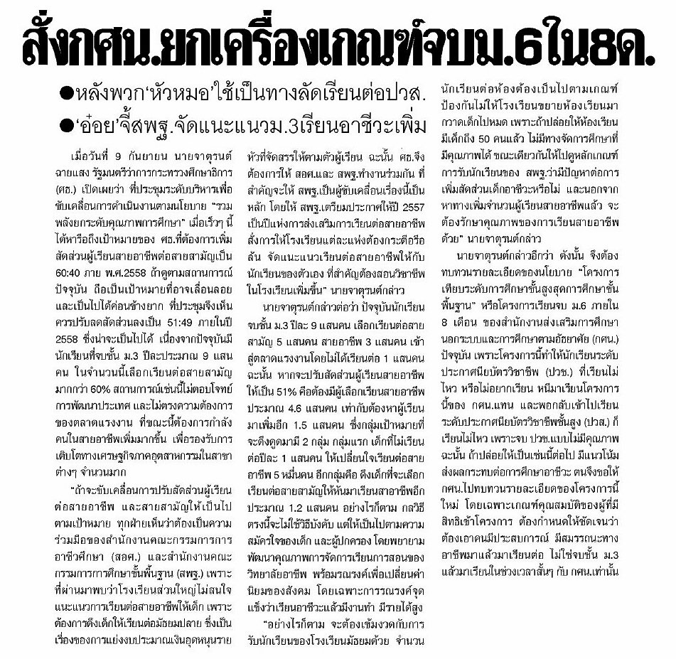 พิมพ์เขียว การเมืองศึกษา "ชะอวด โมเดล" ก่อนถึง 3 กันยายน 2556 03/09/56 มติชน (กรอบบ่าย)