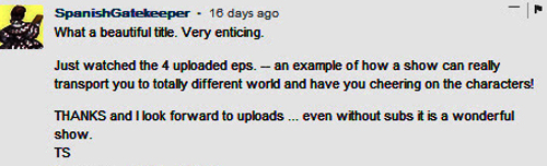 ขอบคุณ และ ฉันตั้งตารอตอนต่อๆไป … ถึงแม้จะไม่มีซับมันก็เป็นละครที่ยอดเยี่ยม
