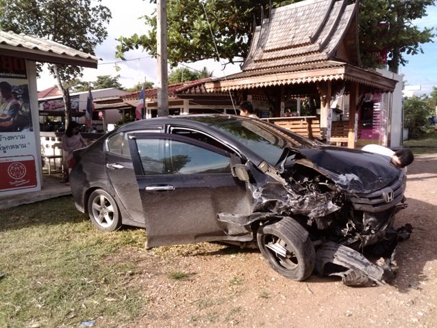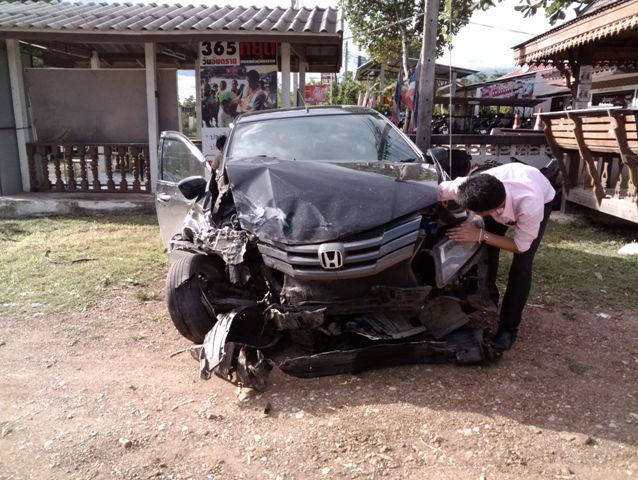 -- CR-V ต้องลุ้นว่า เกียร์แตกไหม เพราะล้อหน้า โดนกระแทกร่นเข้าไปข้างหลังพอสมควรครับ เพลาขับมันจะรั้งเสื้อเกียร์ให้แตกด้วยน่ะครับ แต่คิดว่า ไม่ Total Loss นะ เพราะทุนประกันค่อนข้างสูงครับ