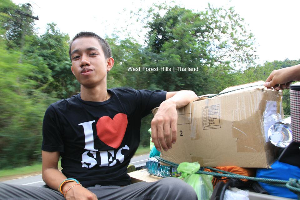 การเดินทางเริ่มต้นที่หน้าหอ TU Dome เวลาประมาณ 3 ทุ่ม ทริปนี้พวกเรานอนกลางป่า ไม่มีการเช่าห้องพักใดๆ ทั้งสิ้น เตรียมเสบียงอาหาร และเครื่องไม้เครื่องมือป้องกันตัวกันไปเอง วางแผนล่วงหน้าเพียง 1 อาทิตย์ เราไปกัน 5 คน รวมคนขับเป็น 6 ของที่เราขนไปเยอะมากจนข้างหน้าเหลือที่นั่งเพียง 2 ที เราให้สาวๆ นั่งหน้า ส่วนผู้ชายแมนๆ อย่างเรา ก็นั่งหลังคดหลังแข็งอยู่หลังกระบะไปเหมือนแรงงานต่างด้าว 555