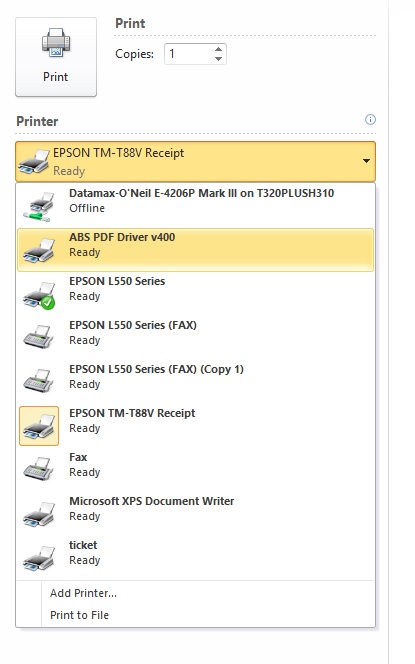 ต้องการจัดลำดับ/ซ่อน เครื่อง printer ที่ list ใน Word2010, ทำยังไงครับ?