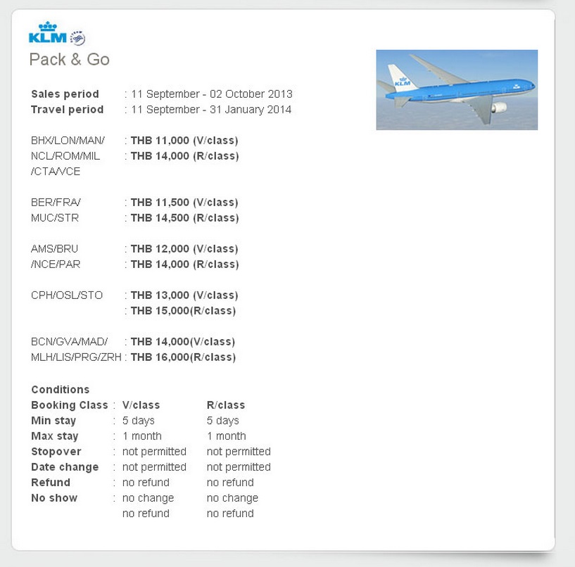 KLM ROYAL DUTCH AIRLINES PRO PACK & GO EFF 11SEP-02OCT'13.