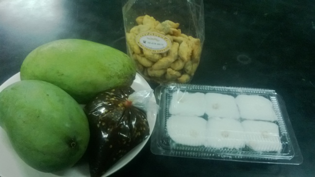 แถมยังมีตะโก้ และที่สำคัญมะม่วงเปรี้ยวลูกใหญ่พร้อมน้ำปลาหวานค่ะ