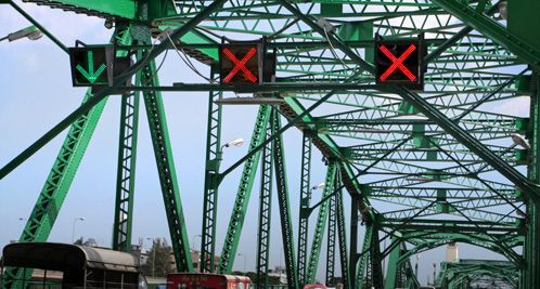 ถนนคู้บอน รามอินทรา กม.8 เป็นถนน 4 เลน ฝั่งละ 2 เลน ช่วงเช้าก่อน 9.00 น. จะให้รถขาออกแล่นได้ 3 เลน ขาเข้าเหลือเลนเดียว โดยมีสัญญาณไฟบอกชัดเจน (ภาพประกอบเป็นภาพจากที่อื่นนะครับ) ผมไม่ได้ผ่านประจำ แต่เวลาผ่าน มักเจอกับรถที่แล่นสวนมาในเลนที่ 2 แล้วต่างคนต่างก็หลบกันไป แต่ผมก็คิดว่า คงไม่ทราบ แล้วก็ไม่ได้มองสัญญาณไฟ