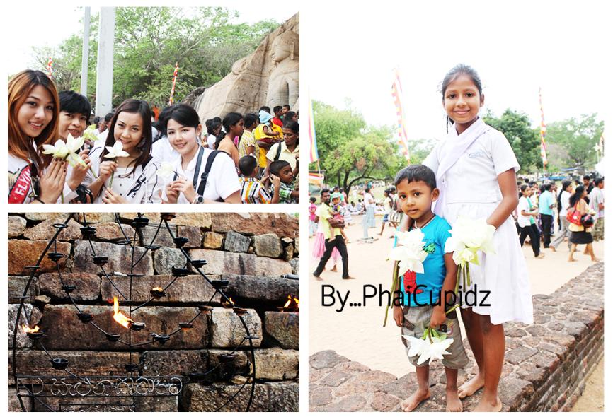 ช่วงที่เราไปตรงกับวันพระจันทร์เต็มดวง(Full Moon) หรือวันพระใหญ่นั่นเอง เป็นวันพระที่สำคัญของประเทศนี้เลยทีเดียว ฉันได้ทราบซึ้งกับพุทธศาสนิกชนในประเทศนี้เป็นอย่างมากที่เขาศรัทธาและหวงแหนพระพุทธศาสนาเป็นอย่างมาก เพราะมองออกไปรอบๆ ฉันเห็นผู้คนจำนวนมากพากันสวมชุดขาวพร้อมใจกันออกไปทำบุญที่วัดมากมาย และตลอดข้างทางจะพบเจอบ้านที่จัดเป็นโรงทาน ตลอดเส้นทาง บ้างก็โรงทานข้าว ไอศครีม และมีน้ำอยู่ตลอดทาง มีผู้คนต่อแถวรอรับโรงทานกันมากมาย….เรามาเยือนที่ เมือง อนุราธปุระ (Anuradhapura) เพื่อมาทำบุญที่วัดพระศรีมหาโพธิ์ ที่มีต้นโพธิ์อายุเก่าแก่ที่สุดในโลกประดิษฐ์สถานอยู่ในวัดแห่งนี้ จากนั้นไปชมความงามของ เจดีย์ที่ใหญ่อันดับ 4 ของโลก