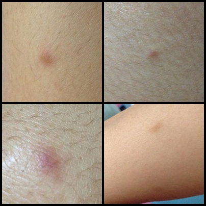 แล้วพอหายมันก็จำเป็นรอยดำแบบรูปที่ 4 อ่ะค่ะ อาการประมาณนี้ แล้วบางครั้งก็ชอบบวมขึ้นมาเหมือนยุงกัดแต่เราว่ามันไม่ใช่ยุง