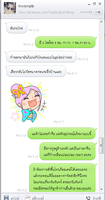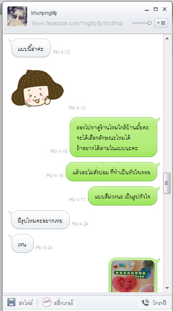 เราคุยกันเยอะพอสมควร แต่รู้สึกว่าลูกค้ายังลังเลไม่รู้จะสั่งอันไหน เลยแจ้งเธอไปว่า ถ้าต้องการชิ้นก็ให้แจ้งมาเด๋วเราจะสรุปยอดโอนค่ะ
