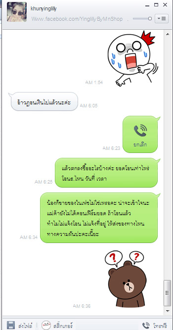 เราก็คิดในใจ อืม...นะ.. มีแบบนี้ด้วย ยังไม่ได้บอกเราเลยว่าซื้ออะไร ยังไม่ได้คอนเฟิร์มยอดโอนเลยนะ บอก โอนแล้ว ที่อยู่ก็ไม่เคยแจ้ง จะให้ส่ง