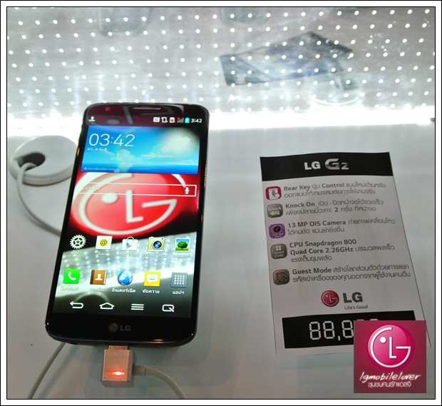 ตามคาดสำหรับในประเทศไทย สามารถพบ LG G2 ได้ในงาน Thailand Mobile Expo 2013 Showcase ในวันที่ 3-6 ตุลาคม 2556 นี้ที่ศูนย์สิริกิติ์