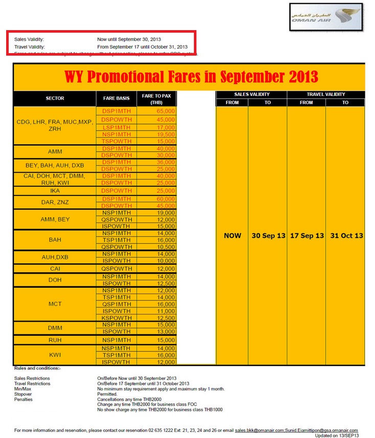 (WY) OMAN AIR PROMO FARE IN SEP 2013 TO EU & ME