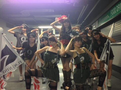 ChouChoขึ้นมาบนเวทีในชุดทหารหญิงแบบดัดแปลงพร้อมทีมแดนเซอร์ในชุดทหารหญิงแบบดัดแปลงเช่นกัน พร้อมธงตามคอนเซปท์ FLAG NINE ออกมาร้องเพลงDreamRiser (Girls und Panzer OP)