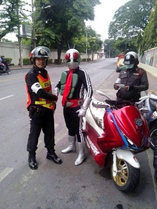 ชี้แจ้งครับจากไอ้มดแดง( ผู้ใส่ชุด) ผมไม่ได้ถูกจับหรือโดนข้อหาใดๆครับ พี่เค้าแค่ขอถ่ายรูปด้วยเพราะชอบไอ้มดแดงเหมือนกันครับ ส่วนพี่ตำรวจด้านขวาที่ถือนั้น คือมือถือครับไม่ใช่ใบสั่งนะครับ ^___^