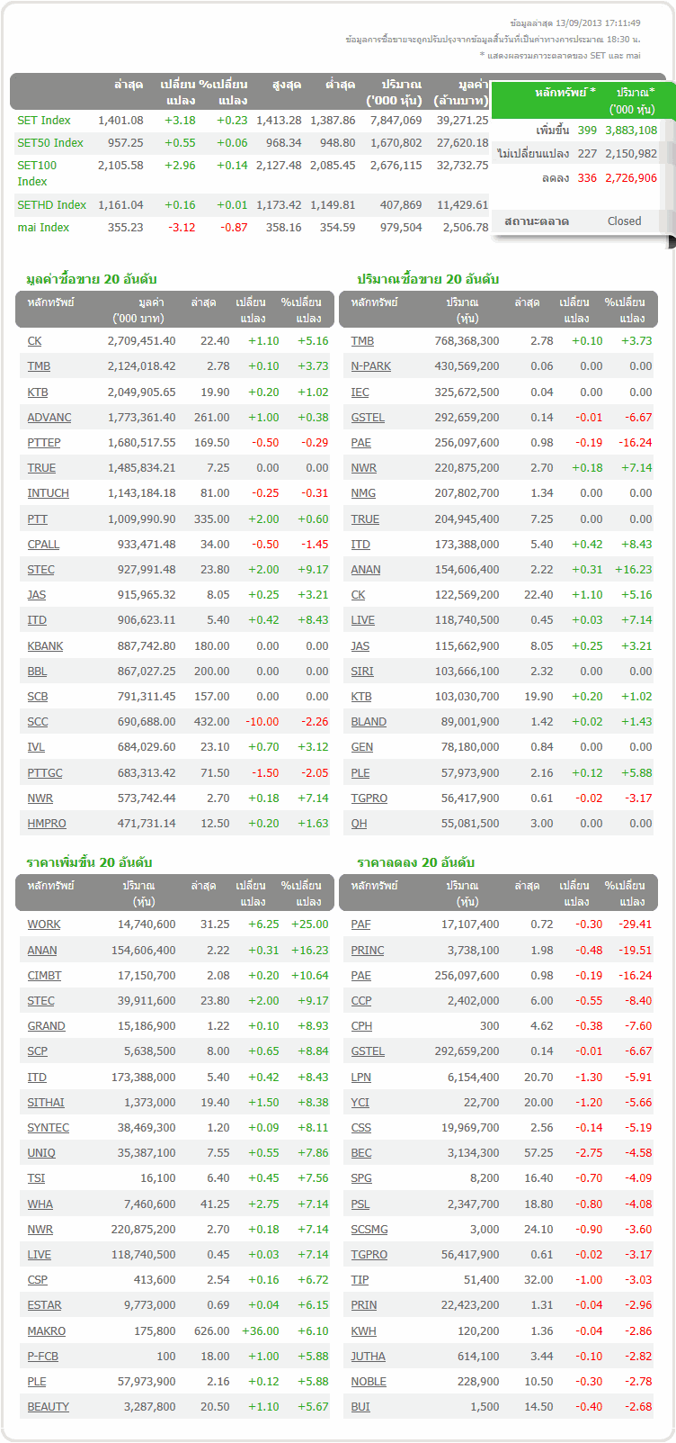 ### Graph Stock : Top 10 . Weekly 13.09.2013 ###