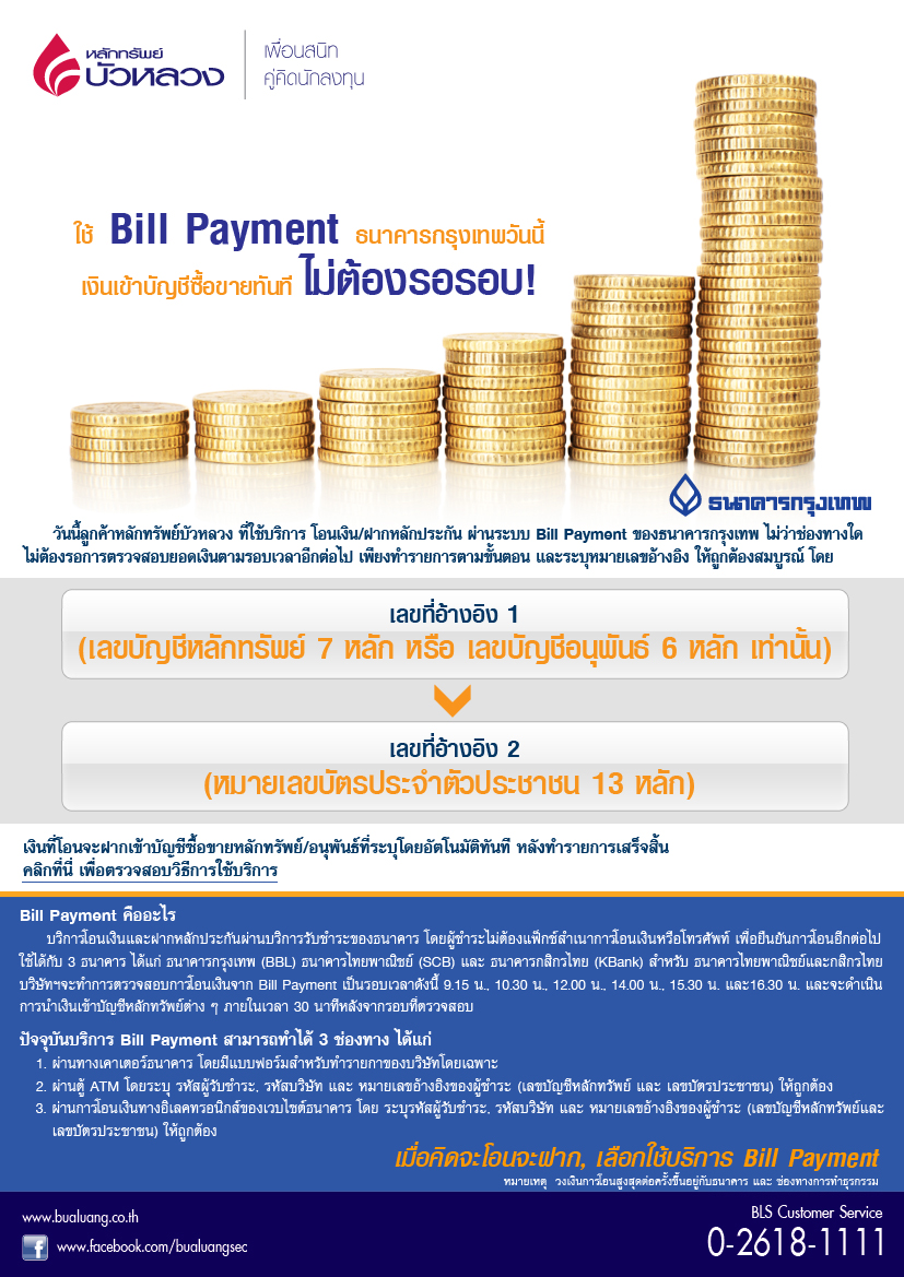 ... อยากสอบถามการโอนเงินเข้าหลักทรัพย์บัวหลวง ผ่านวิธี Bill Payment หน่อยครับ