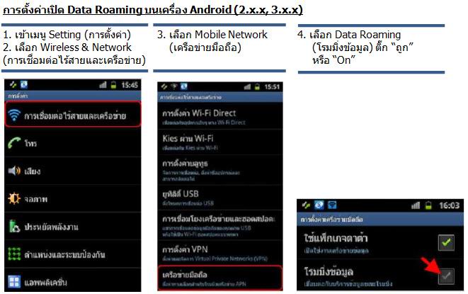 หากคุณสมาชิกหมายเลข 933077 ใช้เครื่อง Andriod ... fb แนะนำให้ทำการเปิด data roaming