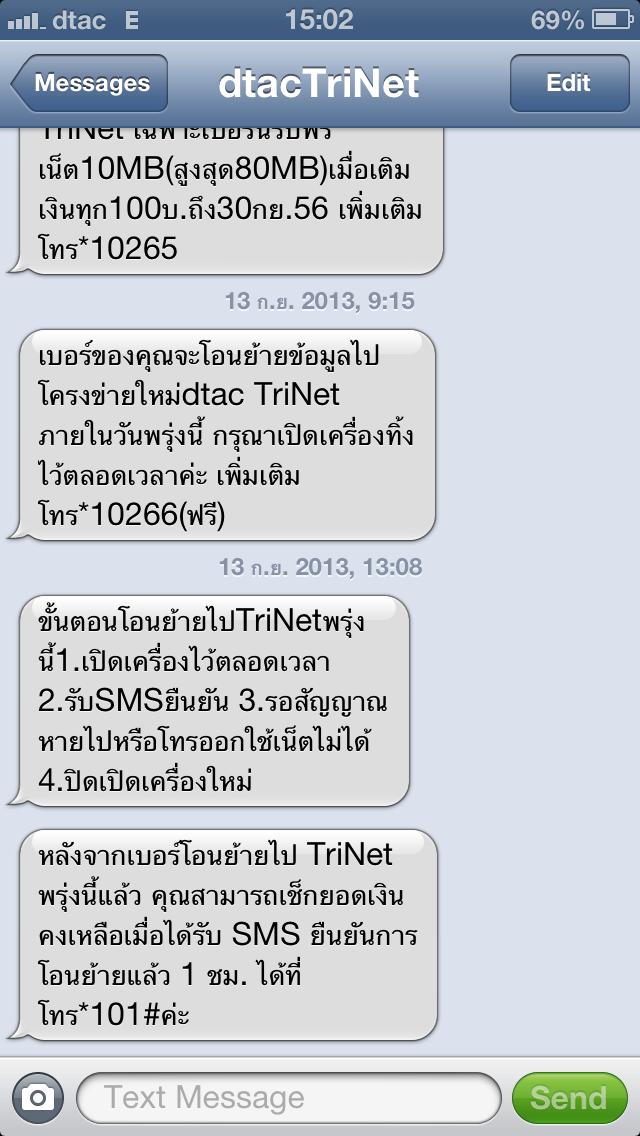 iphone5 เมื่อวานได้รับ sms บอกว่าจะได้รับการโอนย้ายเข้า Trinet ในวันนี้