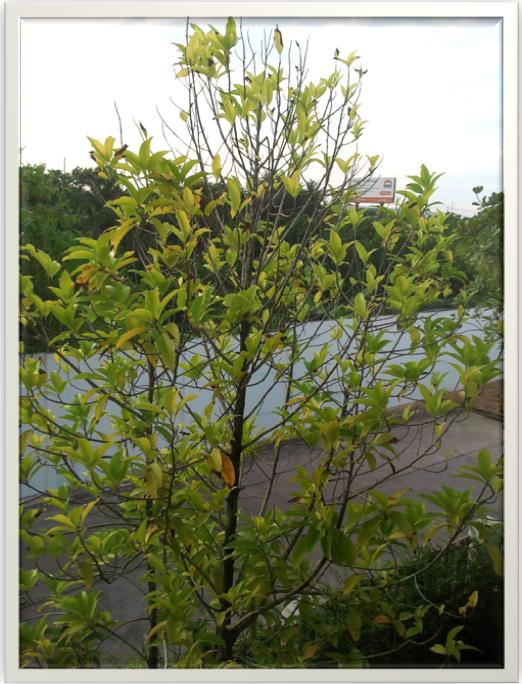 จำปีใบมันเริ่มแห้ง ตรงขอบๆ ทั้งใบออ่น และใบแก่