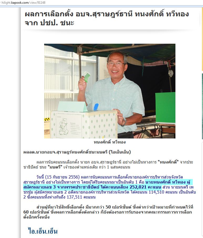 **ขอแสดงความยินดีกับ ปชป. ผลการเลือกตั้ง นายก อบจ.สุราษฯ ด้วยคะแนนทิ้งห่างถึง 137,511 คะแนน (by แก้ม)