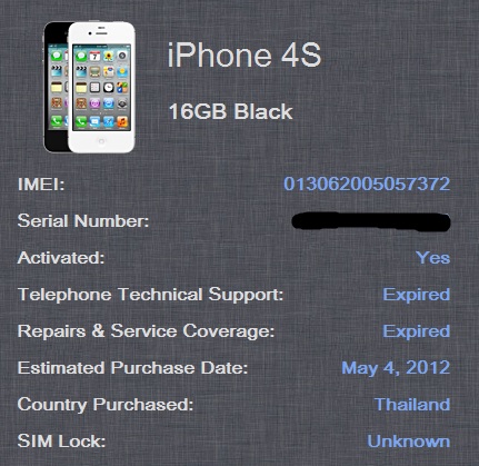 รบกวน cc ช่วยเช็คประกัน iphone 4s ให้ด้วยครับ