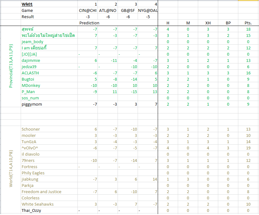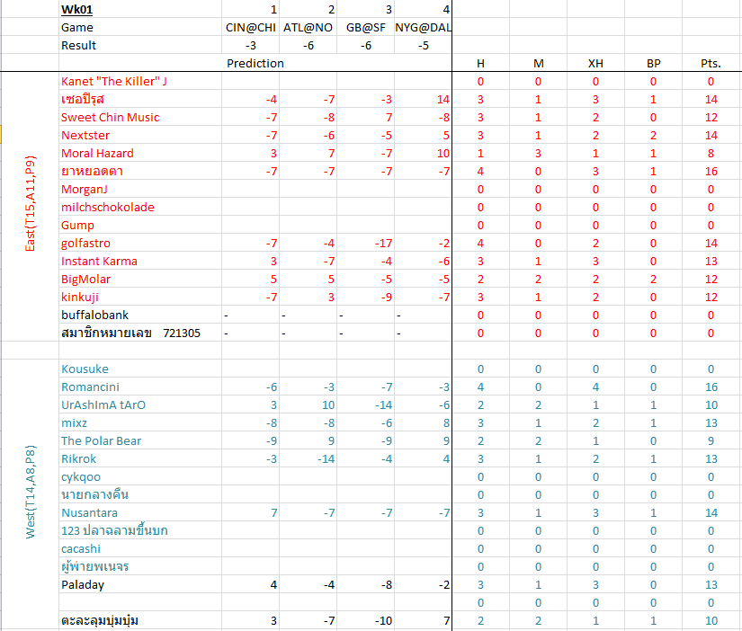 - ทายผลแพ้/ชนะ ถูก ได้ H = 3 คะแนน ถ้าทายสกอร์ +- ไม่เกิน 3 จะได้โบนัส XH อีก 1 แต้ม