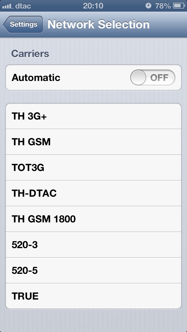 ผมใช้iPhone5 ครับและผมเลือกCarrier off เป็น520-5แล้ว และก็เลือก Autoตามปกติส่วนการตั้งค่า Internet และ MMS
