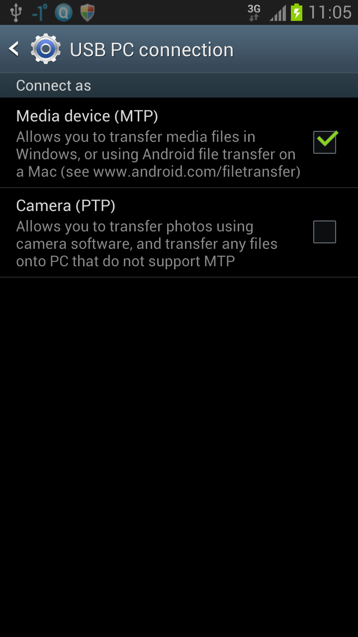 นี่คือรูปที่เข้าไปตั้งค่าคะ เลือกเป็น Camara PTP แต่เรายังไม่ได้เปลี่ยนกลับเลยคะ เครื่องดันมาแบตหมดซะก่อน ไม่ทราบว่าเกี่ยวกับตรงนี้หรือเปล่าคะ  ถ้าไม่ใช่นี่เป็นเพราะอะไรคะ แล้วพอมีวิธีแก้ไหมคะ