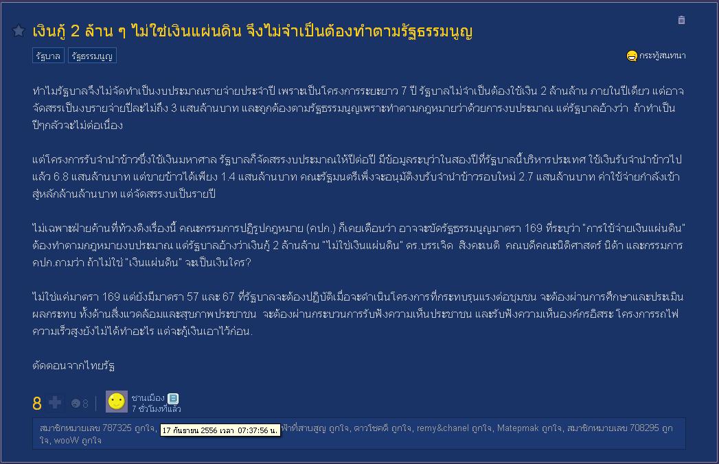 ผมว่า ปชป. จะพูดว่า เงินสองล้านล้านมีความจำเป็นต้องดำเนินการแน่นอนครับ