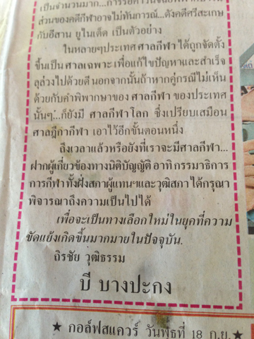 ส่วนอีกข่าวที่ผมเพิ่งรู้จาก column นี้ คือ "SMMได้สิทธิ์จัดโต๊ะเล็กไทยแลนด์ลีก,เอฟเอคัพ5ปีซ้อน" http://www.siamsport.co.th/Sport_Footsall/130912_264.html