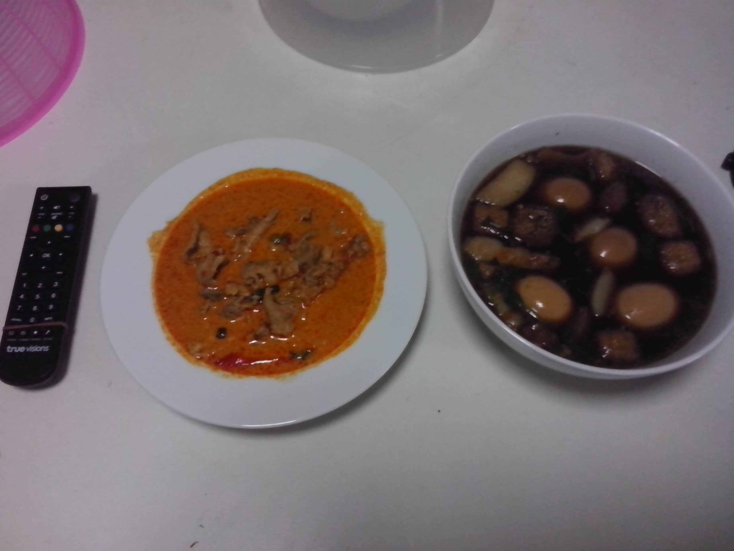 เมื่อเช้านี้ ผมไปซื้อกับข้าวที่หน้าตลาดวัดทุ่งครุ่ เป็นแผงลอยนะครับ ถนนประชาอุทิศ .ผมเลือกกับ2อย่างคือแพนงหมูกับพะโล้ไข่4ฟอง .ผมถือแบงค์ร้อยคิดว่าเหลือๆ .พอเค้าคิดตังผมรู้สึกเหมือนโดนปล้นซึ่งๆหน้าเลยครับ .เค้าบอก120บาท ผมโครตอึ่งเลย เวลานั้นผมซื้อคนเดียวไม่มีใครเลย จะว่าคิดผิดผมก็ถามย้ำแล้วเค้าก็ยืนยัน120บาท .โอ้แผงลอยนะเนี้ยอะไรจะแพงเวอร์ขนาดนั้น .ผมถ่ายรูปเทียบกับรีโมททรูให้ดูว่าแค่นี้จริงๆ .