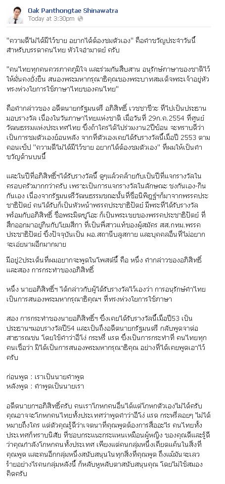 โอ๊ค.... "ความดีไม่ได้มีไว้ขาย อยากได้ต้องชมตัวเอง" คือคำขวัญประจำวันนี้ สำหรับบรรดาคนไทย หัวใจอำมาตย์ ครับ
