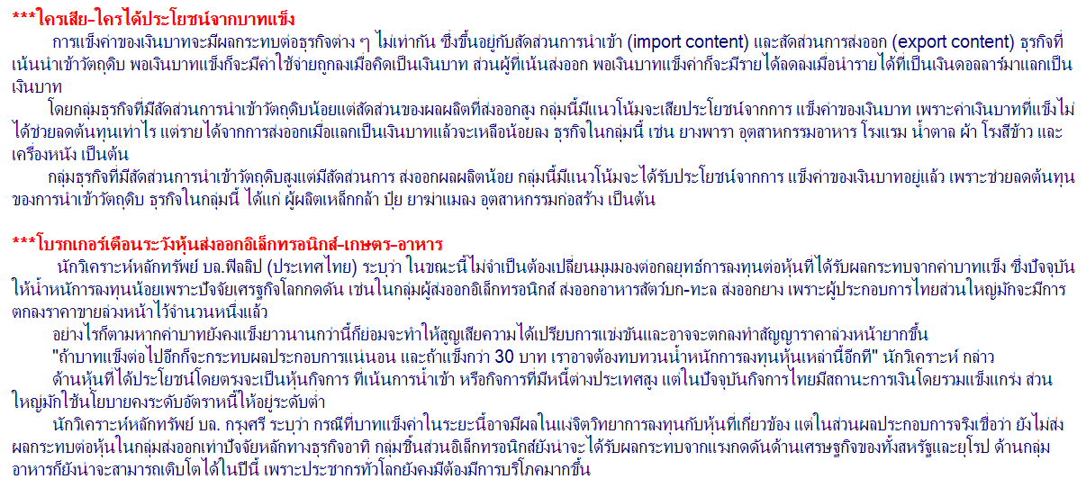 ค่าเงินบาทแข็ง หุ้นอะไรได้ผลกระทบเชิงบวก? หุ้นอะไรได้ผลกระทบเชิงลบ?