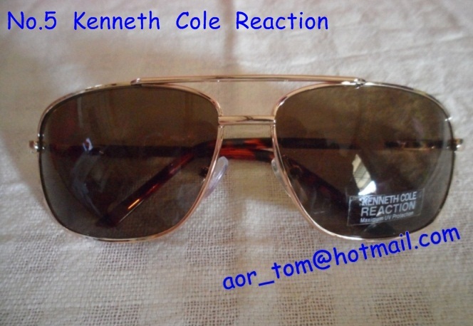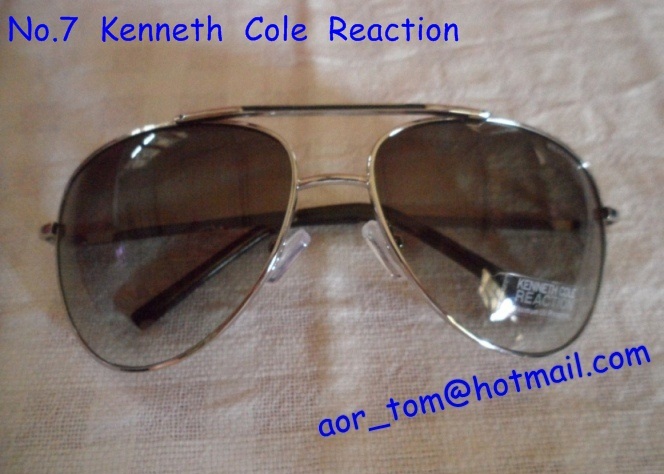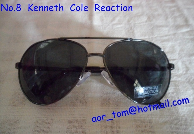 No. 8 KENNETH COLE REACTION ทรงโค้ง Aviator สุดเท่ห์ เลนส์สีดำ มีอักษร REACTION ตรงก้านแว่น กรอบและก้านแว่นสีดำ ทรงนี้เท่ห์ตลอดกาล (ทรง Unisex ใส่ได้ทั้งคุณผู้หญิงและคุณผู้ชายค่ะ)
