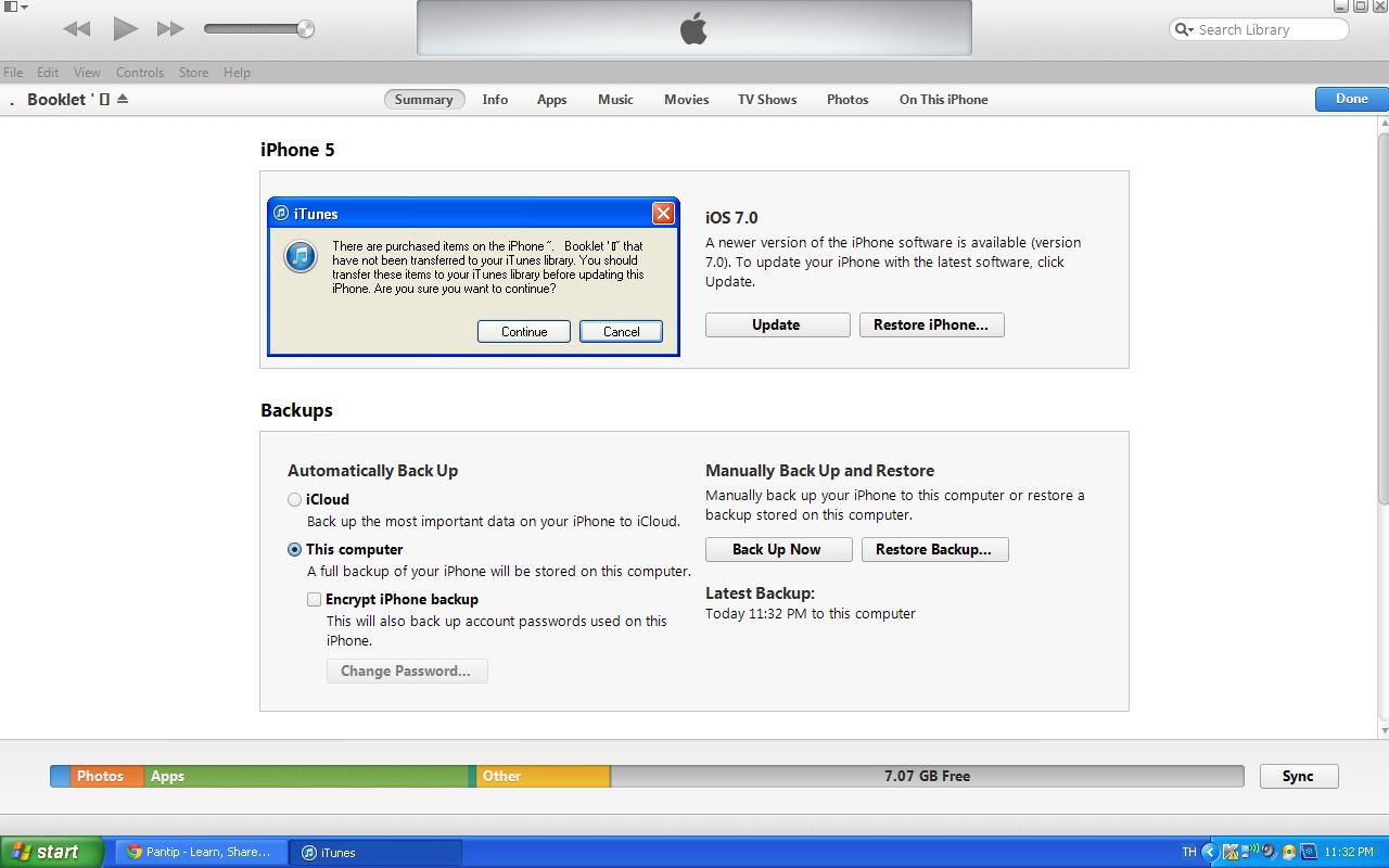 รบกวนหน่อยค่ะ พอดี อัพเป็น ios7 เเล้ว เข้าไอจูนไม่ได้ มองไม่เห็นไอโฟนในไอจูน เเต่มองเห็นไอโฟนในคอมพิวเตอร์ เลยลง ไอจูนใหม่ล่าสุด 11 เเต่ขึ้นว่า this iphone cannot be used because required software is