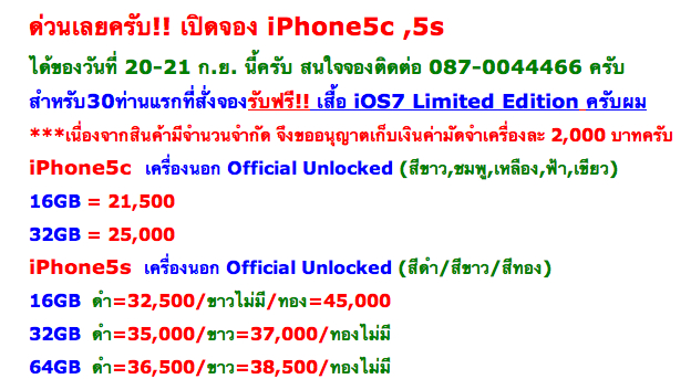 iPhone5s,5c ราคาเครื่องนอกมาแล้ว
