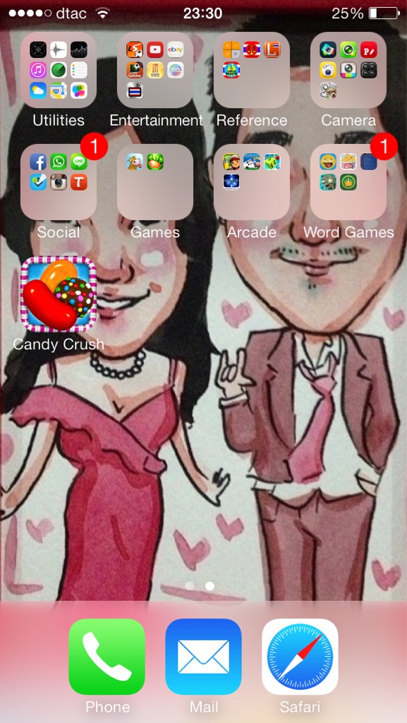 แต่รุ่นน้องอัพในไอโฟน4 แล้วโฟลเดอร์มันเป็นแบบใสๆ จนมองทะลุเห็นวอลเปเปอร์ด้านหลัง อย่างนี้ค่ะ