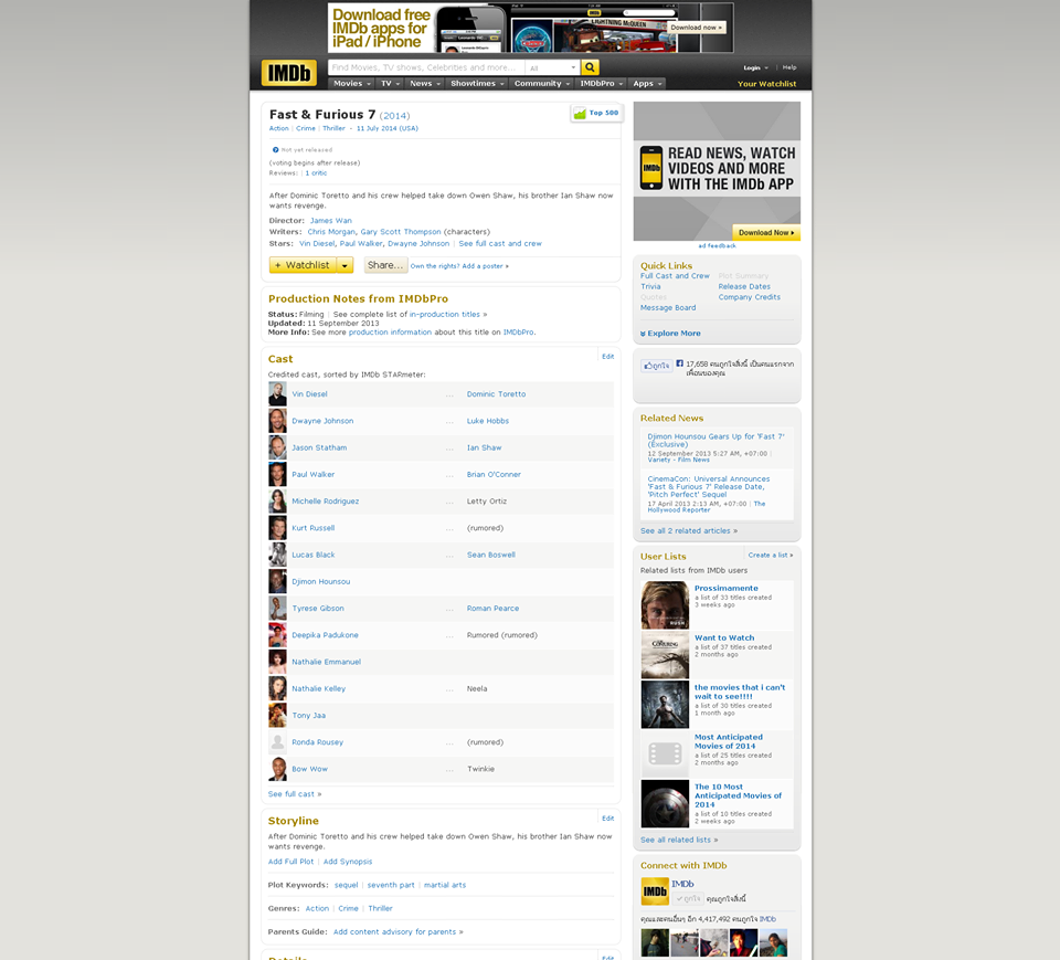 เห็นรายชื่อนักแสดงของพี่จา พนม เราขึ้นเวบหนังดังแล้ว ดีใจจังค่ะ
