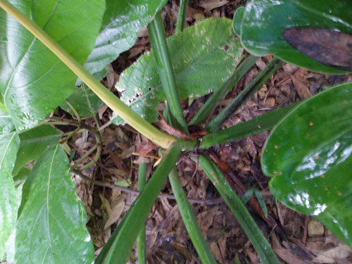 คือเราคิดว่ามันเป็นตระกูลกระดาดน่ะค่ะ แต่ไม่รู้ว่าใช่กระดาดแดงมั้ย คือต้นที่เราหาจริงๆ คือกระดาดแดงอ่ะค่ะ เห็นอันนี้คล้ายเลยถ่ายไว้ แต่ถามอาจารย์ อาจารย์บอกว่านี่ไม่ใช่ต้นกระดาด และมีคนบอกว่าเป็นเดหลี แต่เราลองไปหาภาพเดหลีแล้ว ใบไม่ใช่แบบนี้อ่ะค่ะ นี่ตรงปลายใบมันเป็นโค้งๆ เหมือนหัวใจกลับหัวด้วยอ่ะค่ะ