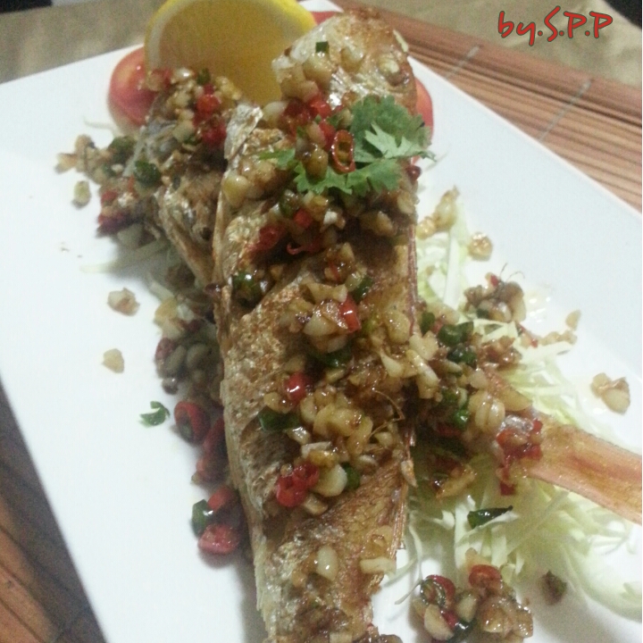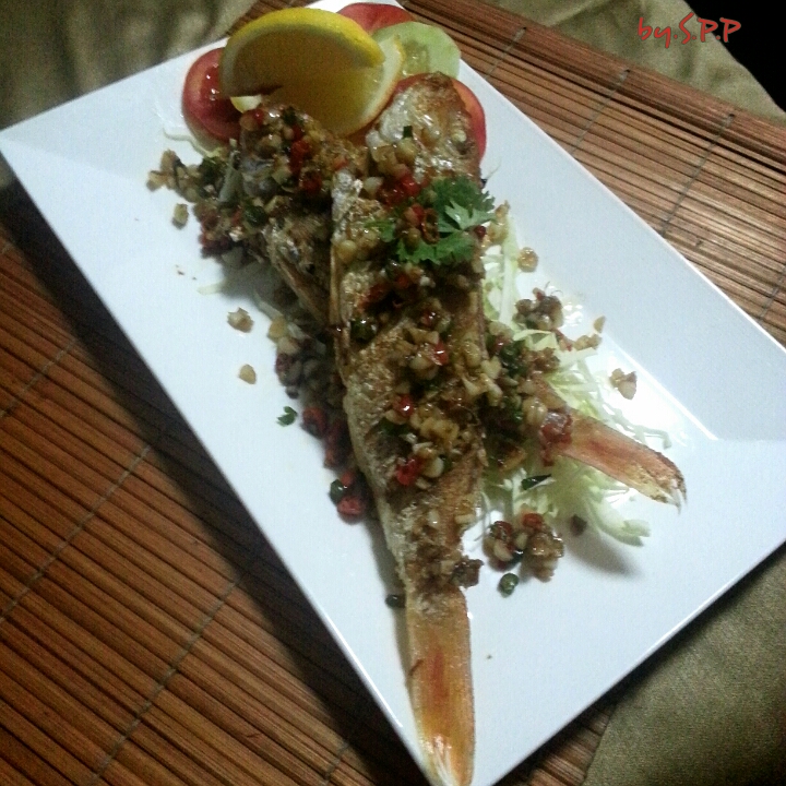 ปลากรอบนอกนุ่มใน หอมกลิ่น กระเทียม พริกขี้หนู รากผักชี เอาสามเกลอคลุกข้าวสวยร้อน ๆ ฟิน จริง ๆ ครับ