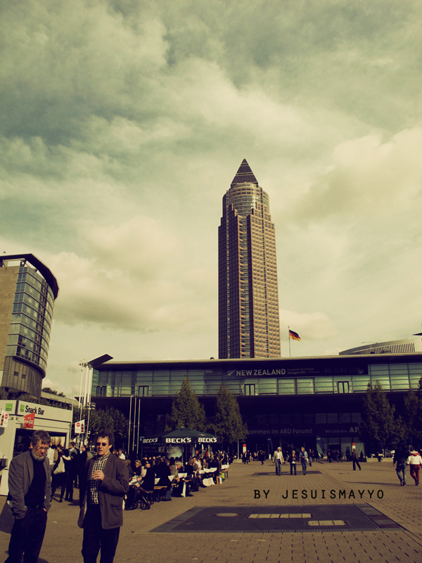 สัญลักษณ์ของ Frankfurt Messe คือตึกสูงที่มีรูปทรงคล้ายดินสอ เวลานั่งรถไฟมาสังเกตเห็นตึกนี้เมื่อไร เป็นอันลงได้ (ชื่อสถานี Messe)