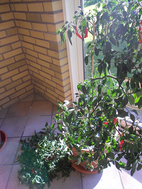 ขณะเก็บหลักฐานอิตาแซมยังพยายามมาแทะเล็มกิ่งพริกอีกค่ะ ไม่มีสลด