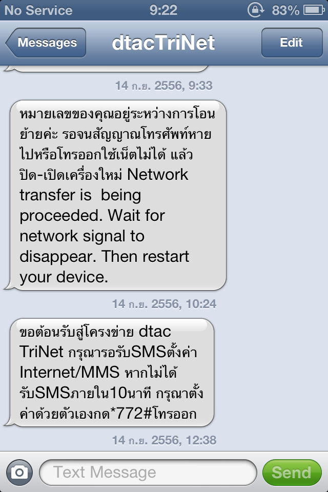 ได้รับการโอนย้ายไป Trinet เมื่อวันที่ 14 ก.ย. ที่ผ่านมาหลังจากการโอนย้ายพบว่าโทรศัพท์ที่ใช้ (iPhone4) สัญญาณโทรศัพท์มีอาการแกว่งและขึ้นสถานะ no service เป็นส่วนใหญ่ทำให้ไม่สามารถใช้งานได้ โทรเข้าคอลเซนเตอร์ทางเจ้าหน้าที่ได้ทำการรีเซทสัญญาณให้และทำการเปิด-ปิด ต่อมาก็ยังมีอาการดังกล่าวอีกจนกระทั่งถึงวันนี้เป็นเวลา 7 วันแล้ว จึงอยากขอความช่วยเหลือสมาชิกท่านใดมีวีธีที่สามารถทำให้โทรศัพท์สามารถกลับมาใช้งานได้เหมือนตอนก่อนโอนย้ายระบบ เนื่องจากมีความจำเป็นต้องใช้โทรศัพท์ในการติดต่อสื่อสาร ขอขอบคุณล่วงหน้า