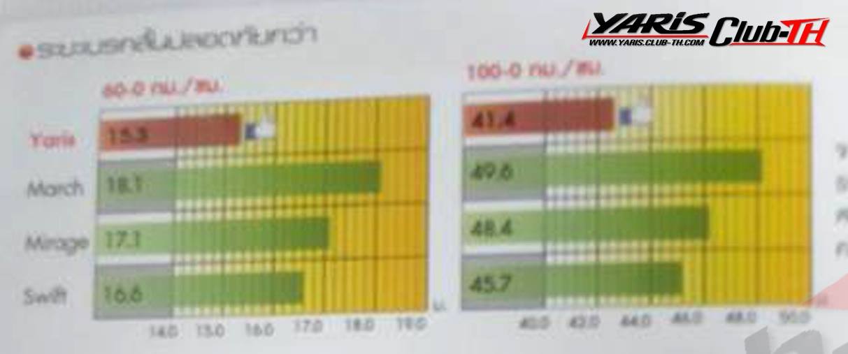 จากภาพนะครับ แสดงให้เห็นว่ารถในกลุ่มอีโค่คาร์ด้วยกัน yaris eco car 2013 สามารถทำช่วงเปรกได้สั้นกว่ารถของค่ายอื่นๆ