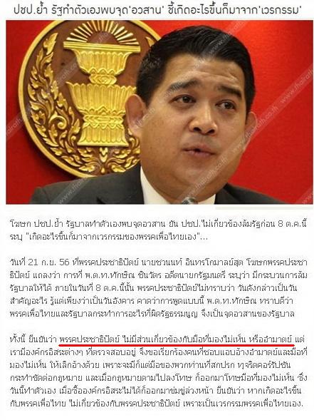http://www.thairath.co.th/content/pol/370571 อยู่ในรัฐบาลเป็นคนระดับผู้บริหารใน ครม.เดียวกันแท้ๆ ไม่คุยกัน ไม่ทำงานร่วมกัน แล้วจะแก้ไขปัญหาให้สำเร็จได้อย่างไร? ไม่นับรวมท่านโคสกพรรค ท่านโคสกตำรวจ