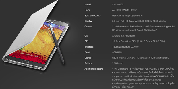เปิดราคา Samsung Galaxy Note 3 และ Galaxy Gear 23,500 บาท