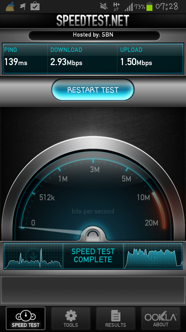 Speed Test Truemove H 3G+ เช้านี้ที่นครพนมครับ