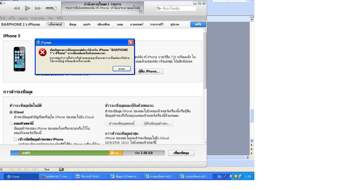 update iso 7 บน itunes แล้วมันขึ้นฟ้องตามภาพ เป็นเพราะว่าอะไรค่ะ ช่วยหน่อยค่ะ