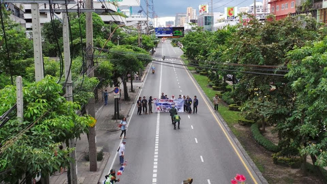นักศึกษาอาชีวะ ปิดถนนถ่ายรูป ระหว่างเดินเท้าประท้วง สรยุทธ์ สุทัศน์จินดา
